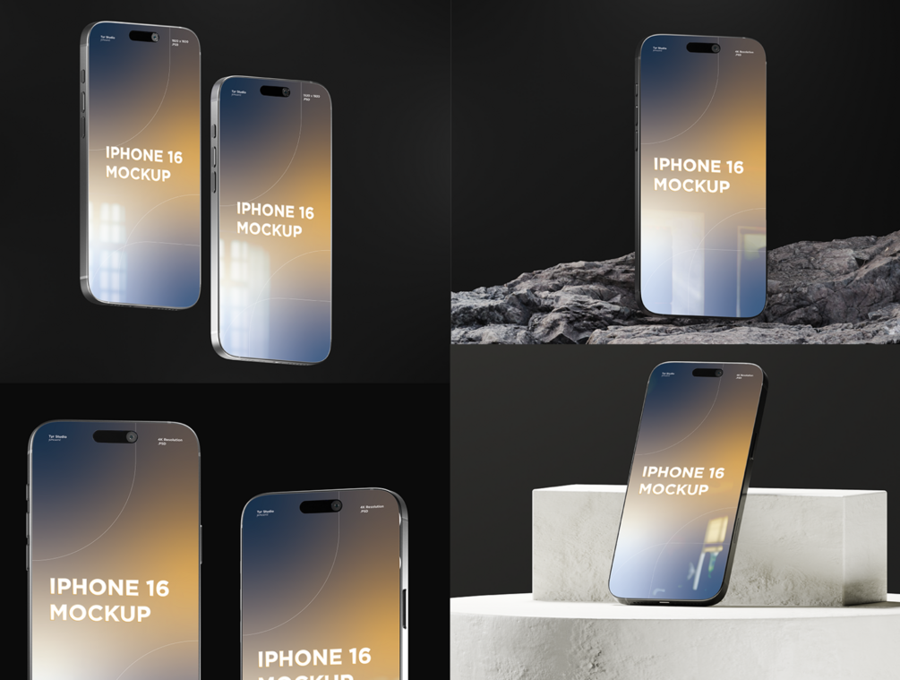 4 iPhone 16 Mockups - Fully Editable Photoshop Template by Tyr Studio
